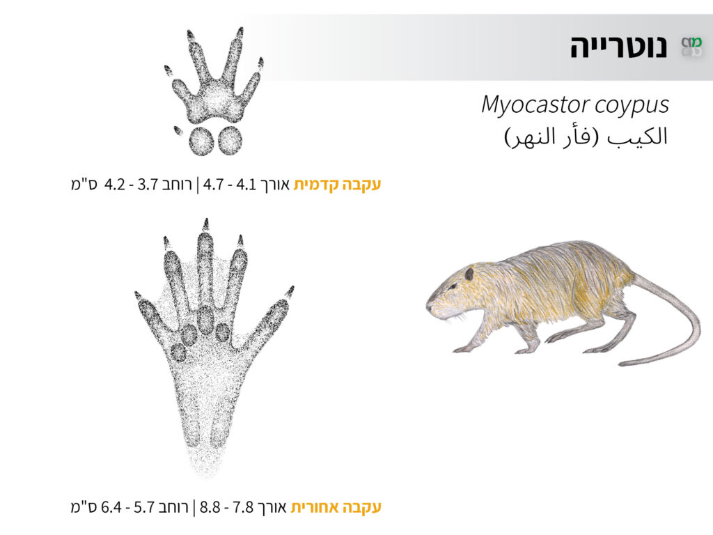 עקבות מכרסם ענקיות, עם קרומי שחייה על הרגל האחורית. ברגל הקדמית כריות גדולות.