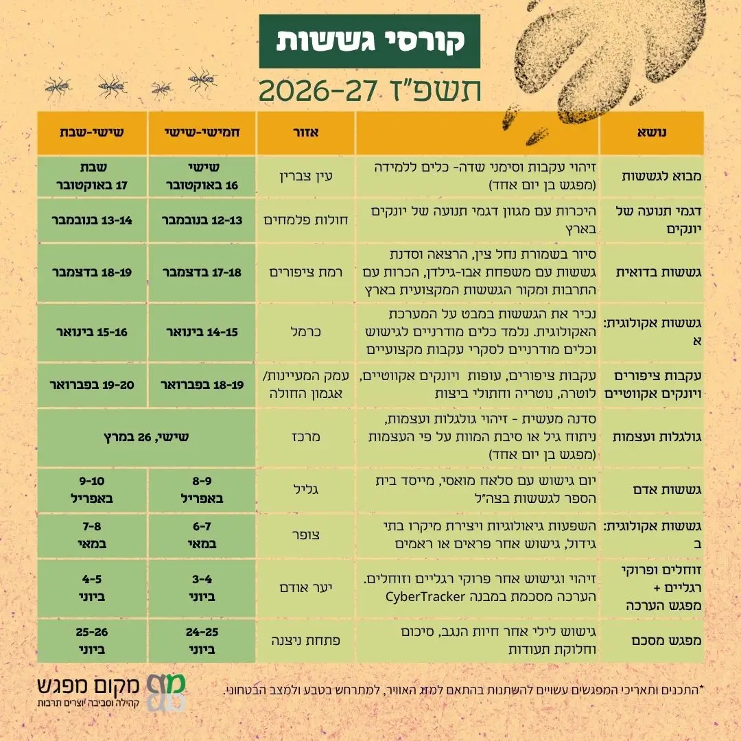 בקורס נלמד לזהות עקבות עקבות ציפורים יונקים, זוחלים, פרוקי רגליים ועקבות אדם,