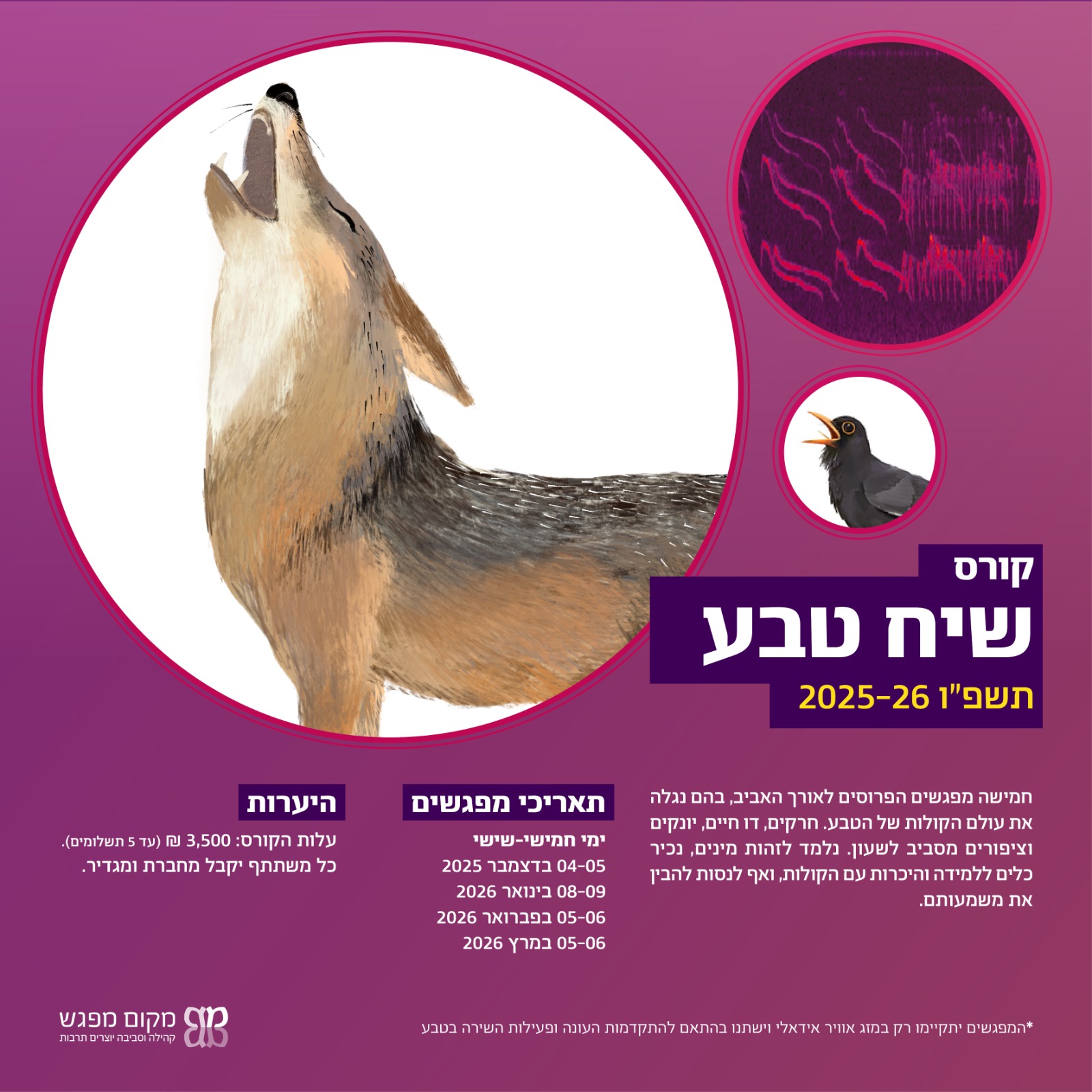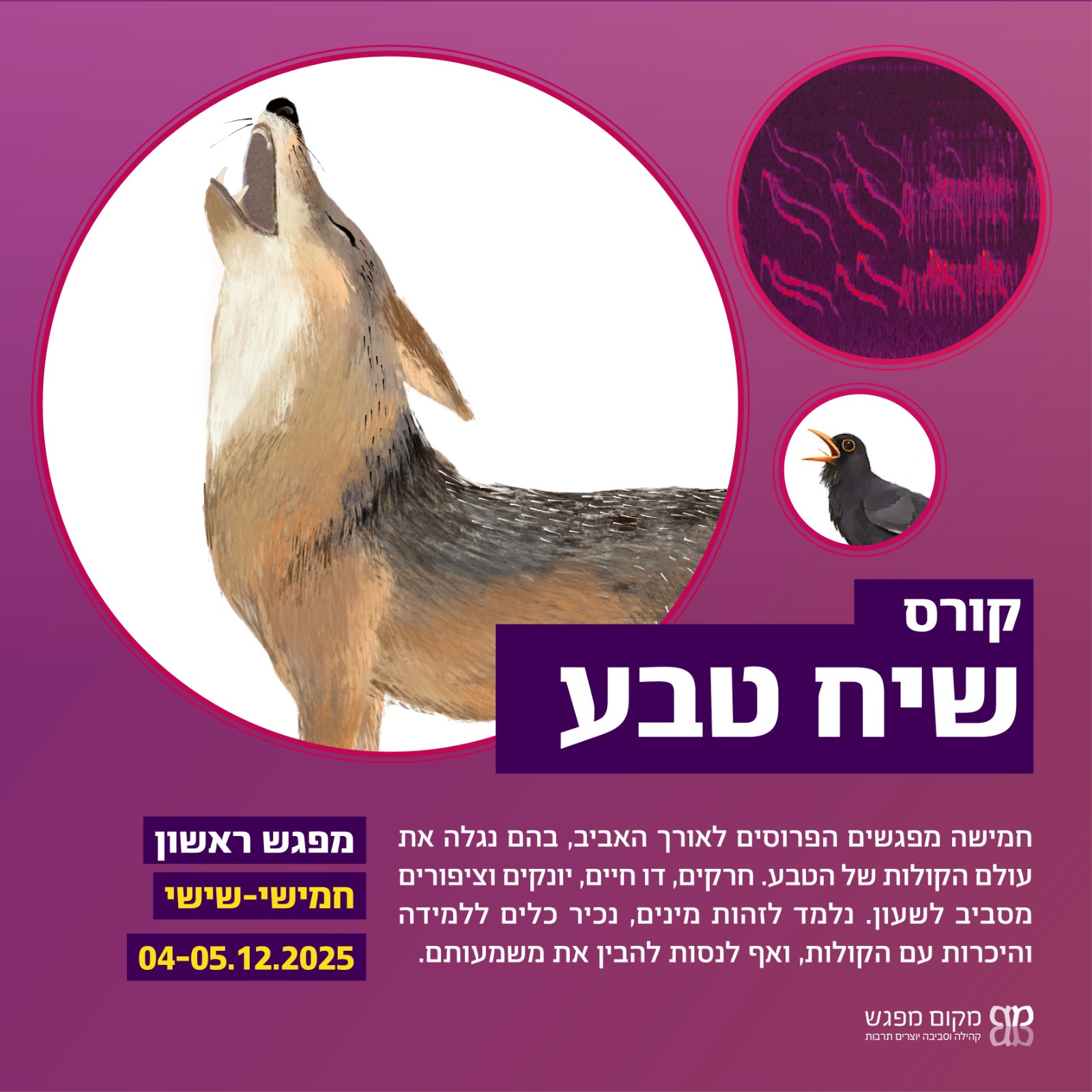 משמעותי בשדה במגוון בתי גידול ללמידה והכרות עם מגוון ה קולות של הטבע הישראלי. הרצאות עיוניות על עקרונות